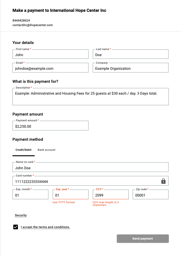 We are very excited to be hosting you for you next cross cultural experience in Hamtramck, Michigan at International Hope Center. The “Pay Fee” button below will allow you to pay housing and administrative costs associated with your experience. The “Pay Fee” button will send you to our secure bank portal through Autobooks. The form should be filled out with the information that our Assistant Director has provided you with. For any questions or addition information, please contact us at sarah@ihopecenter.com.